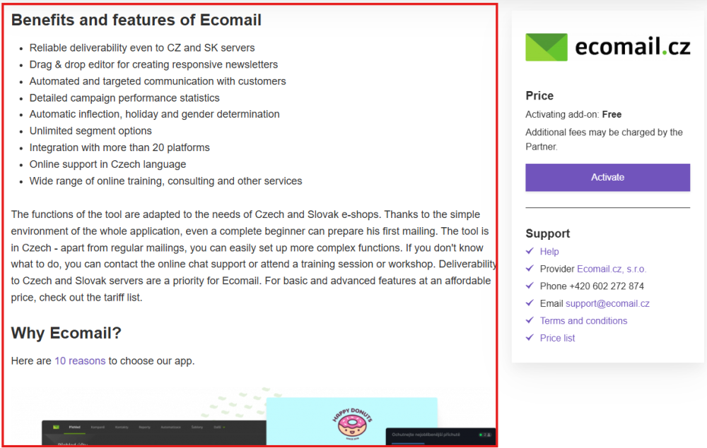 An important part of the add-on is its presentation to Upgates clients (your potential customers). It is good to take care of this presentation, because if the client finds exactly what he is looking for in it, he will most likely never return to your add-on.